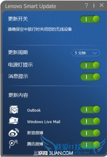 Lenovo Smart Update会在您将个人电脑进入睡眠模式后,依照您设置的更新周期,在后台自动更新信息的软件。所更新的信息包括您的微博和邮件等内容。