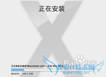 4.点按“安装”。Mac OS X 安装期间,屏幕底部会显示一个状态栏。