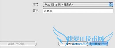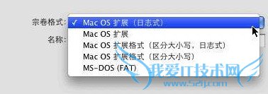 7.从“格式”弹出式菜单中,选取“Mac OS 扩展(日志式)”。
