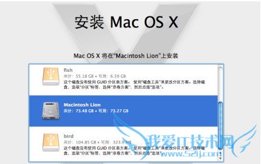 9.磁盘被抹掉后,从磁盘工具菜单中选取退出磁盘工具。将返回“安装 Mac OSX”屏幕;详情请看“第二步:安装Snow Leopard操作系统”。
