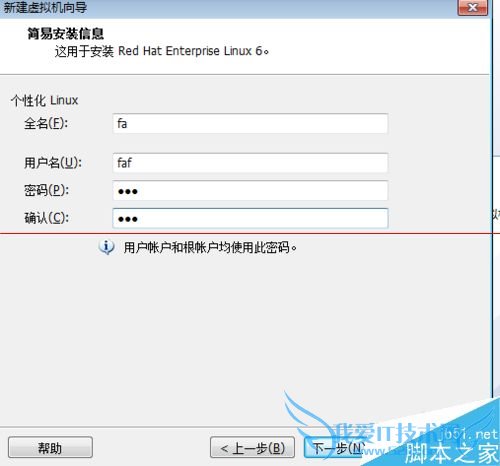 4、点击下一步,会出现个性化的linux对话框,这个是你装好系统之后的密码和用户名,得记住。