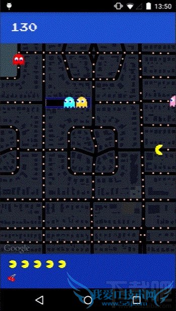 1:点击屏幕左下方的吃豆人图标就能以城市街道为背景享受这款经典的游戏。谷歌能够对当前道路进行分析,并根据道路来设定级别,如果当前所在的位置并不适合来玩游戏。