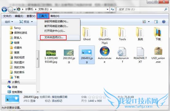 当用户按照上面的设置完成之后,此时用户需要进入到文件夹的设置里面,可以打开上面这个资源所在的文件夹,然后用鼠标单击文件夹上方的‘工具’这一项,此时用户在出现的列表中找到‘文件夹选项’这个,单击鼠标将其选中。