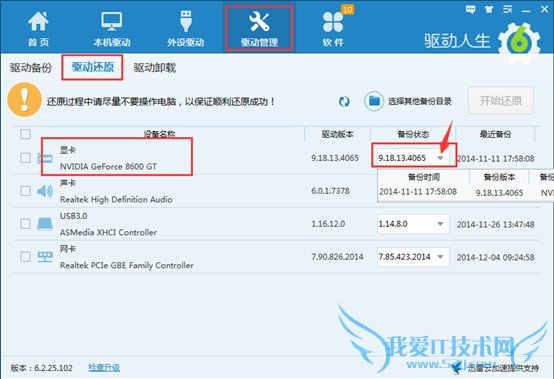如果你的电脑是在升级之后出现的该情况,请在驱动人生的驱动管理板块,将显卡驱动进行还原操作。