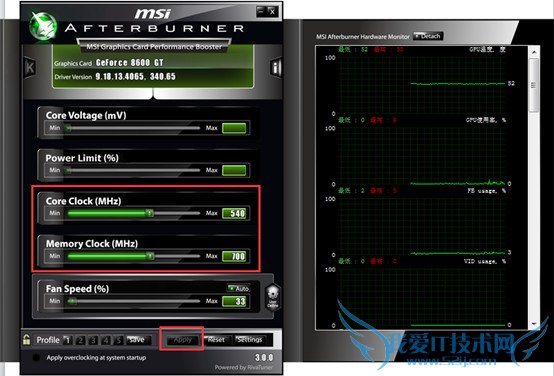 方法三:当上述两种方法都无法解决该问题,则需要考虑是显卡的频率问题引起。可以下载一些降频软件,比如:MSI Afterburner、XtremeTuner Plus等,安装后,修改Core Clock(核心频率)和Memory Clock(显存频率),记住设置后,要点击Apply(应用)。