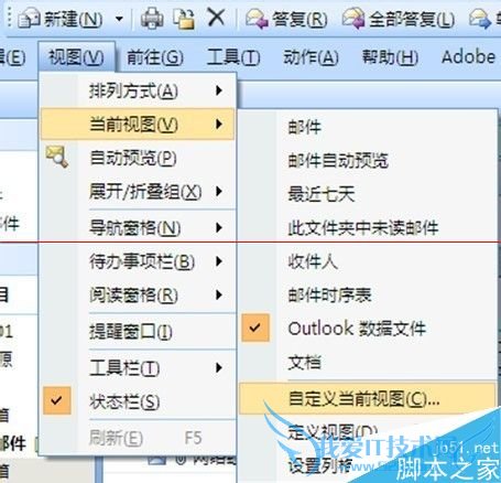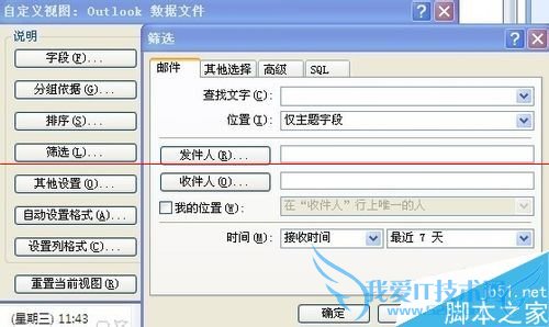 3、由此怀疑大部分邮件被隐藏了,通过查找该收件箱的属性,在视图->当前视图->自定义当前视图中有一项筛选的功能,