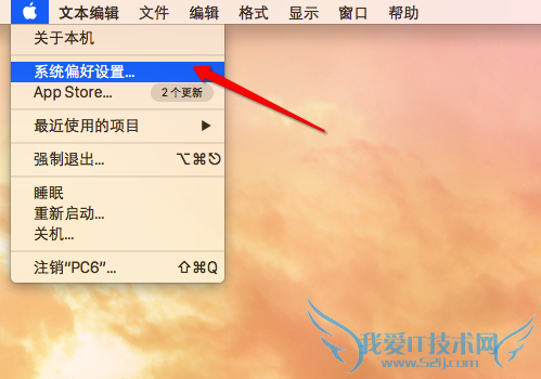 第一步、点击屏幕上面的苹果图标,下拉菜单中点击选择“系统偏好设置”