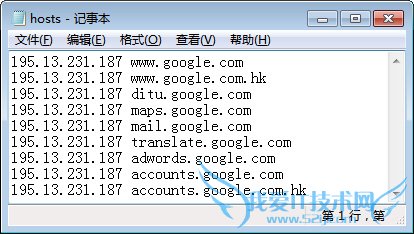 找到可用IP后,就可以添加这个IP到Hosts文件里了,先关闭“电脑管家”、“360安全卫士”这类工具,然后编辑C:WindowsSystem32driversetchosts文件,在文件结尾添加一行“可用IP地址 目标域名”即可。
