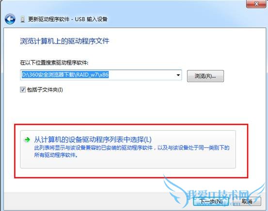 右键选择更新驱动程序---浏览计算机以查找驱动程序软件---从计算机的设备驱动程序列表中选择---选择USB输入设备---下一步问题解决。