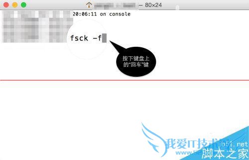3、接着请输入 fsck -f 命令,并按下键盘上的“回车”键执行命令。