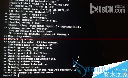 5、当修复完成以后并看到屏幕上提示“ The volume Macintosh HD was reaired successfully”时,说明已经成功,如图所示