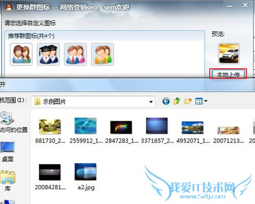 步骤三、如果是在网络上找到的图片,可以将其下载到本地,保存在磁盘上,然后点击“本地上传”按钮,这样在通过指定路径来把图片上传的qq群,做q群的图标了。如图所示: