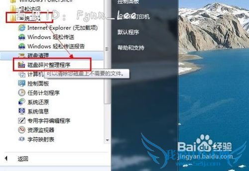 在“开始”菜单点击“附件 -> 系统工具”,然后点击次文件夹下的“磁盘碎片整理程序”以打开,一般电脑长时间未进行磁盘碎片整理导致电脑关机很慢。