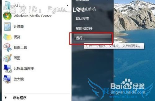 你可以将关机后自动关闭程序的等待时间缩短。点击“开始”菜单按钮打开“运行”程序,也可以用组合键Win+R键打开,如图所示。