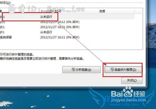 打开程序后,选中C盘,然后点击“磁盘碎片整理”按钮分析并整理C盘的磁盘碎片,如图所示。整理完成后,你可以这里其他磁盘的碎片,方法相同。