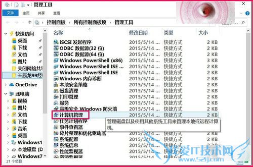 2、在管理工具窗口,我们找到并左键点击:计算机管理,打开计算机管理窗口;