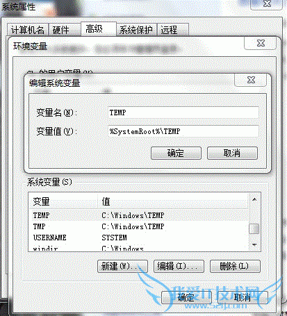 然后选择环境变量,在下拉菜单中选择TEMP,TMP,选择编辑.如下图(图2):