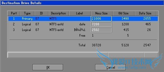 5). 预览源磁盘分区,光标所在分区New Size对应磁盘容量大小可调整,并OK确认。