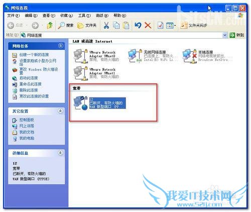 2、在弹出的“网络连接”对话框中找到“宽带”项目下的连接,如图: