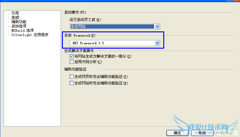 4.使用vs2010创建web mapping application,出现“连接到无法连接到asp.net development server”的错误解决方法:打开网址属性页,网站的目标Framework由4.0改为3.5如下图: