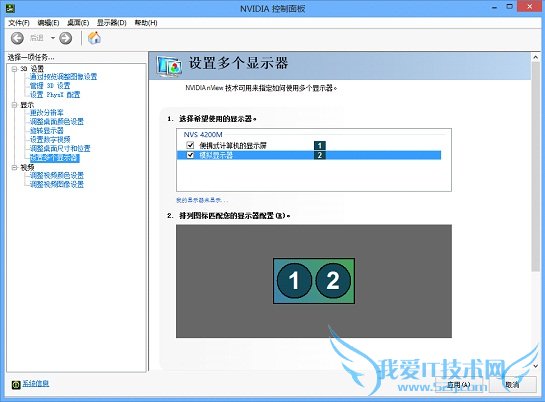 6.拖动屏幕1和屏幕2可以适当调节显示器的排列位置;