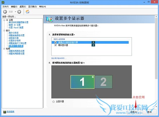 7.在排列图表中右击屏幕2,选择复制1,点击应用,可实现屏幕的复制功能。