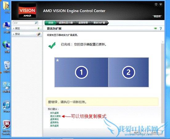 5.下面的附加选项里我们同样可以适当调节屏幕的排列和选择屏幕的复制。