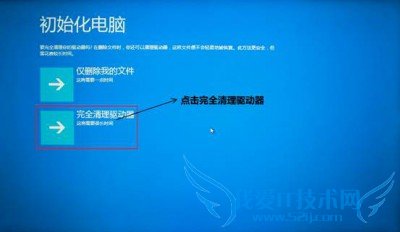点击“完全清理驱动器”,这将会清除所有个人文件以及应用,并将所有设置还原为默认设置: