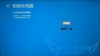 点击“下一步”,此操作将删除所有个人文件和应用,并将电脑设置还原为默认设置: