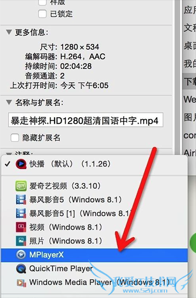 1、下载安装后,选中视频,点击右键,选择mplayerx播放器