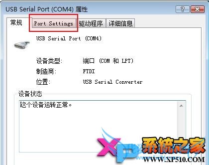 1、按照要求安装转接头驱动程序,在“设备管理器/端口”下,可以发现一个“USB Serial Port(COM4)”,如下图: