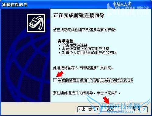 最后,需要提示的是,一定要明白自己的上网方式,因为如果是光纤入户的上网方式,那是无需拨号连接的,开机就能自动直连宽带(光纤),所以往往创建的宽带连接是没有用的,而且还有可能会导致系统出错。