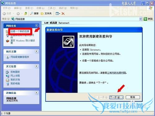 网络连接→创建一个新的连接→此时会弹出设置向导→下一步