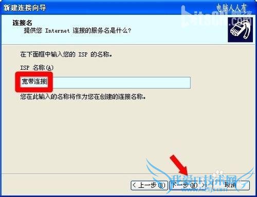 如果是第二项,来到此界面,输入宽带名称:宽带连接→下一步。