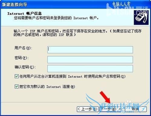 然后是填写用户名,密码(都是宽带提供商提供的)等讯息→下一步