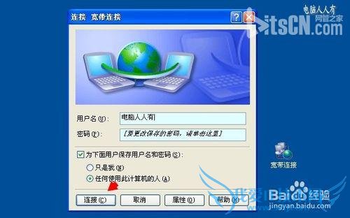 稍后,会弹出连接的设置框,输入用户名、密码点击链接即可上网。