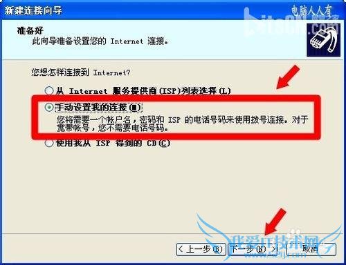 新建连接向导→手动设置我的连接→下一步