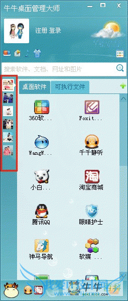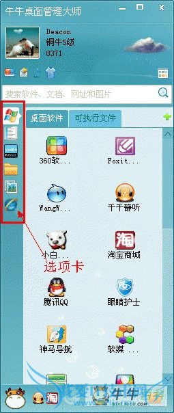 在众多用户的强烈需求下,牛牛桌面管理大师在新版中加入了时尚的元素,把头像和选项卡做成自定义图片,这下可以把你心中的她搬到桌面上啦。下面请跟随小编的步伐,带你去看看如何让你的牛牛桌面更加时尚。