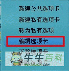 右键点击任意一个选项卡,会弹出右键菜单,选择编辑选项卡。