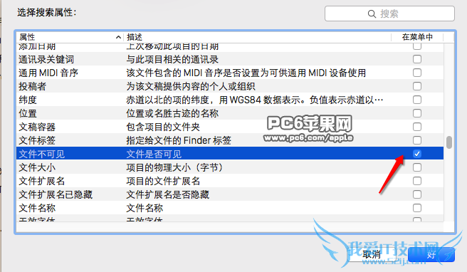 第三步、在选择搜索属性界面,点击自己认为合适的类别,这里以“文件不可见”为例,点击勾选后,点击底部“好”