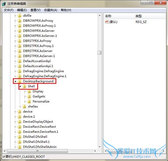 2.在打开的注册表编辑器中,依次展开HKEY_CLASSES_ROOT→DesktopBackground→shell进入下一步操作。如下图所示