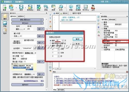 完成参数设置后,我们在脚本属性区调整循环次数,点击运行下循环次数“…”,之后会弹出“循环执行”框,我们将循环次数设置为50次,如下图: