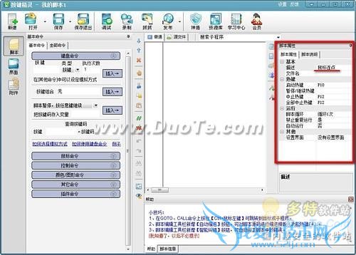 接下来我们先要进行一项准备工作,就是要先在脚本属性区这里,把脚本描述和热键改掉。