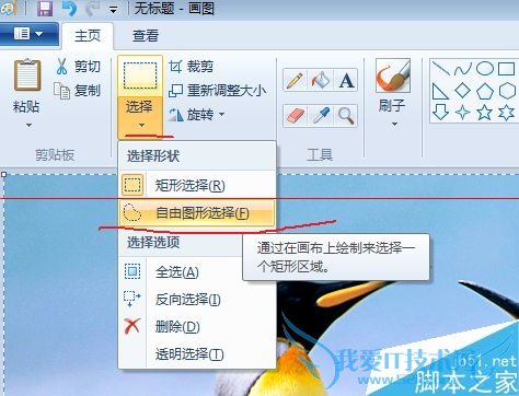 4、点击’选择‘下的’自由图形选择‘,这是进行图片裁剪
