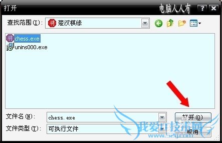 7、打开之后,找到该程序(确保该程序是安全的)的安装目录,点选主程序→打开