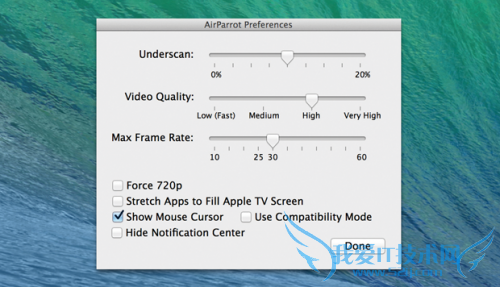 最后一个选项是兼容模式(Compatibility Mode),它有助于修复一些基于OS X10.6可能出现的问题,隐藏通知中心(Hide Notification Center)选项可以在镜像时隐藏通知中心。这当你做个人展示时非常重要。你也可以在此将鼠标光标隐藏