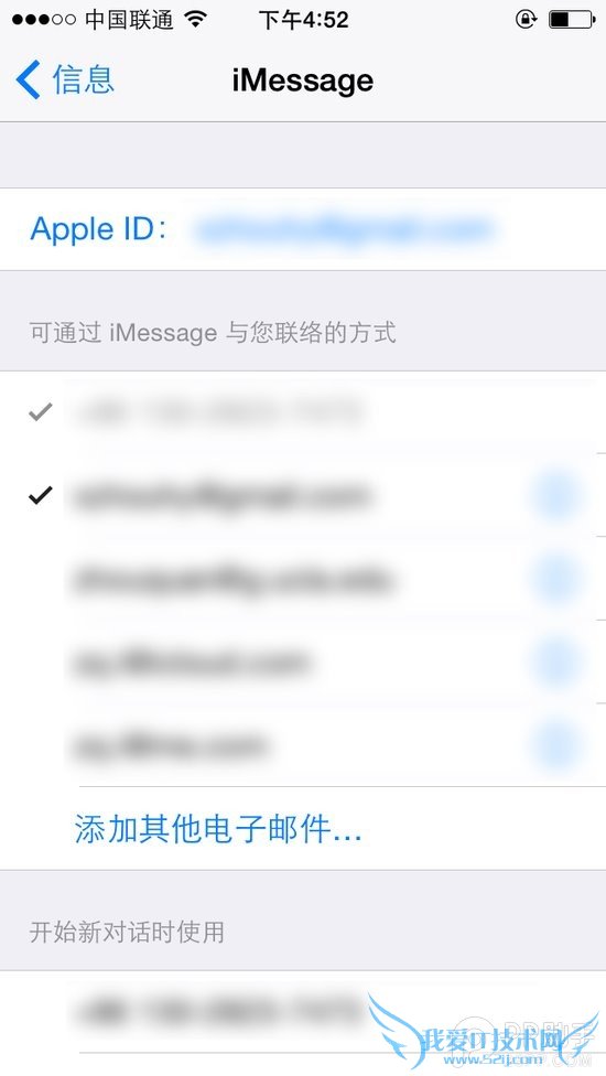 在“可通过iMessage与您联络的方式”里,至少勾选上你的手机号码和Apple ID所用的邮箱,一般来说手机号码是默认勾选,不用再做选择。