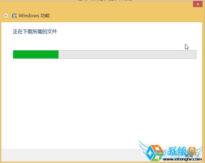 4、然后点击确定按钮,这时win8系统会自动从网上获取.net 3.5安装文件来完成安装(当然,请保持联网状态);