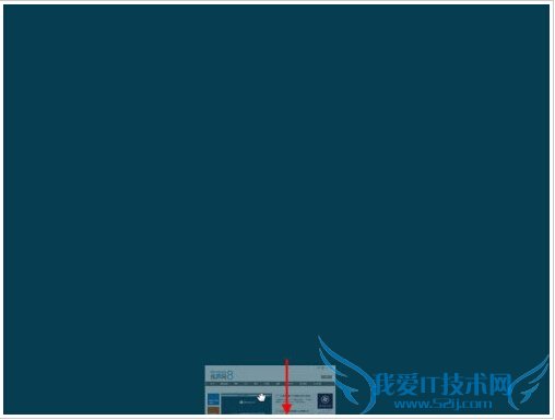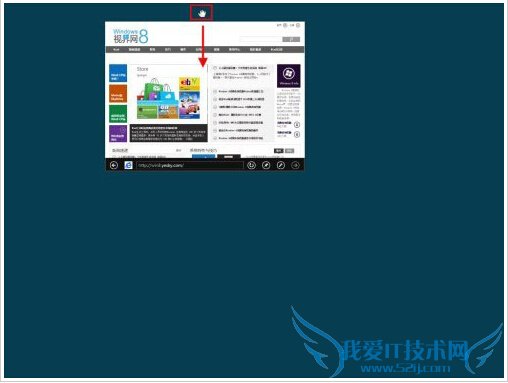 7、鼠标移动到Win8界面顶边 出现小手图标,按住鼠标左键从上往下拖拽 关闭当前程序;