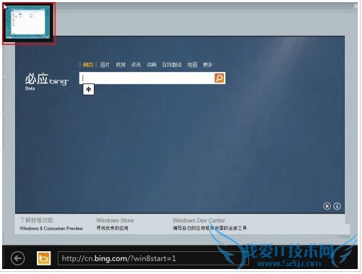 4、鼠标移动到Win8界面左上角继续向下移动 调出当前运行程序略缩窗口;
